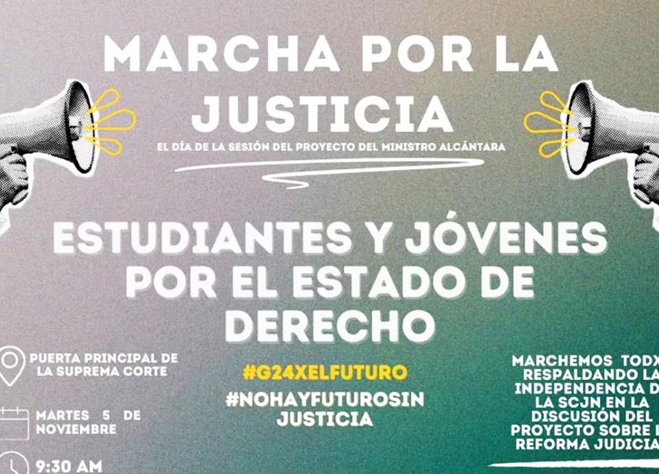 Se llevará a cabo el 5 de noviembre frente a la SCJN, organizada por la JUFED y estudiantes de diversas universidades, para manifestar en contra de la reforma.