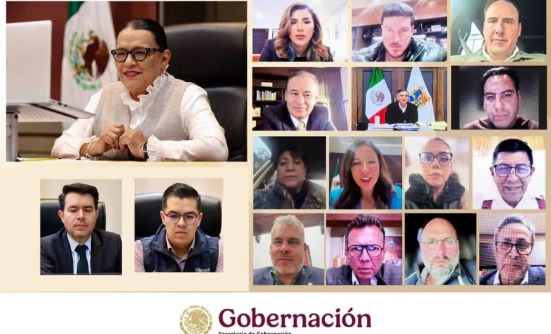 Rosa Icela Rodríguez informó que a la reunión asistieron Marina del Pilar Ávila, gobernadora de Baja California; Alfonso Durazo, de Sonora; Samuel García, de Nuevo León; Américo Villarreal, de Tamaulipas; Manolo Jiménez, de Coahuila; y Salomón Jara, de Oaxaca.