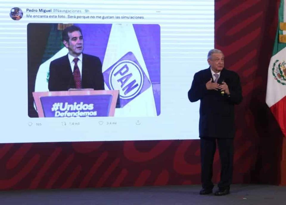 "Es el presidente del INE en un congreso del PAN, y dice Pedro Miguel (en Twitter): 'me encanta esa foto', yo también lo comparto, estoy de acuerdo, será porque no me gustan las simulaciones (...) hay dirigentes de otros partidos que, como decíamos, su verdadera doctrina es la hipocresía, o sea, unos corruptos cínicos, y otros corruptos hipócritas".