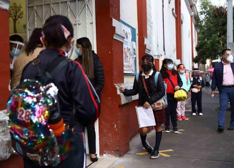 CIUDAD DE MÉXICO.- Desde antes de las 8:00 horas en la Primaria Secretaría del Trabajo y Previsión Social ubicada en la colonia Doctores, alcaldía Cuauhtémoc, de la Ciudad de México, niños y padres de familia hicieron fila para reiniciar clases de manera presencial luego de más de un año de permanecer con clases a distancia.