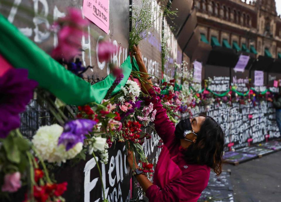 Tres días antes de la conmemoración del Día Internacional de la Mujer, y aprovechando la oscuridad, en la madrugada del pasado 5 de marzo, Palacio Nacional fue amurallado al instalarse decenas de pesadas vallas metálicas que medían casi tres metros y lo cual fue fuertemente criticado por amplios sectores de la sociedad. Desde políticos de oposición hasta figuras del espectáculo y agrupaciones feministas criticaron esta acción, al acusar insensibilidad del gobierno federal ante los altos índices de violencia contra la mujer y los feminicidios. Inmediatamente, cientos de mujeres convirtieron este muro metálico en un memorial para recordar a las víctimas de feminicidio que ha habido en el país, y en ellas, además de poner flores, se plasmaron los nombres de víctimas, como el de Ingrid Escamilla, Brenda Josselín, Wendy Paloma y Claudia Alarcón. Este muro fue defendido por el presidente López Obrador, cuando aseguró que no había sido "por miedo" que se hubiera instalado, sino para evitar confrontaciones y daños a monumentos históricos, pues señaló que había "mucha provocación", al tiempo que manifestó: "Si no se cuida Palacio Nacional, ¿qué imagen se da en el mundo?". "Están en todo su derecho de protestar, de expresarse, de manifestarse, pero hay mucha provocación, mucha gente que se infiltra y que lo que busca es causar daño. Utilizan como forma de protesta la violencia y tiran bombas molotov. "Imagínense que no se cuide el Palacio Nacional y lo vandalizan, ¿qué imagen se da en el mundo?, pero eso que no se confunda. No es miedo, yo puedo tener miedo, pero no soy cobarde. Entonces no es por eso que se están poniendo esas bardas para proteger al Palacio, es para que no haya provocación". En la marcha conmemorativa del 8M, el Gobierno de la Ciudad de México calculó que salieron a manifestarse alrededor de 20 mil mujeres, las cuales llegaron al Zócalo abrazadas, blandiendo los puños y gritando consignas que se han convertido en emblemas, como "La policía no me cuida, me cuidan mis amigas".