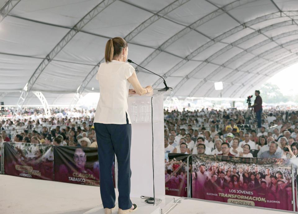 Acompañada por el gobernador Javier May (Morena), la mandataria federal recordó al expresidente Andrés Manuel López Obrador y lo calificó como "el mejor presidente" que ha tenido México.
