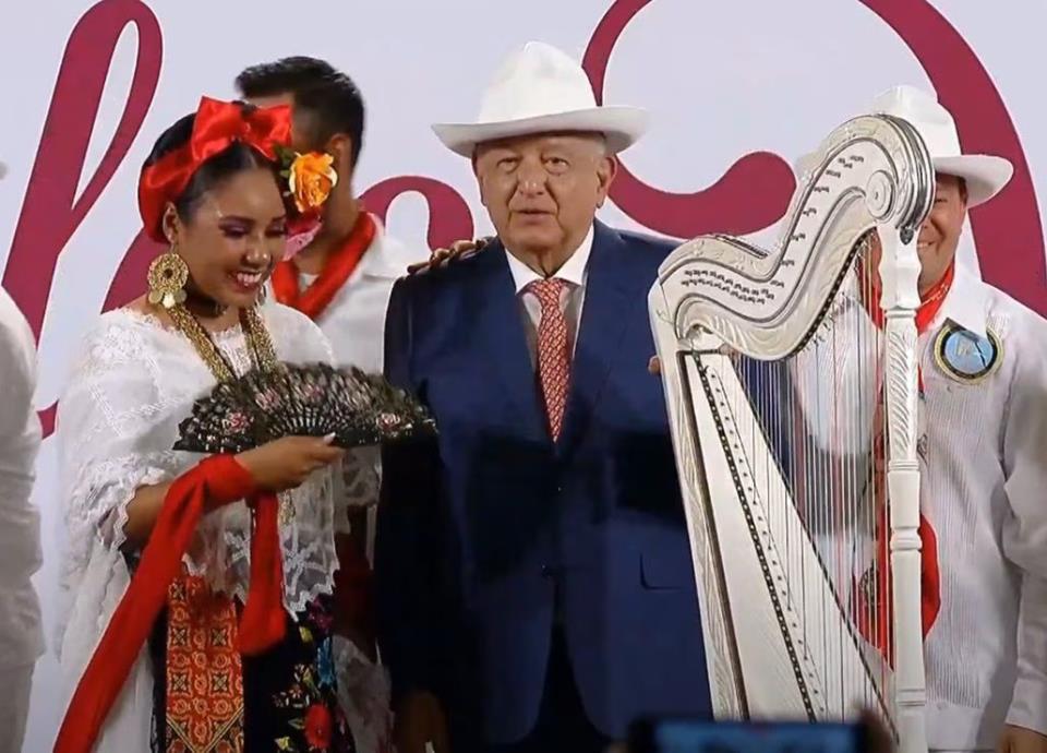 "En el festival no podría faltar la música de Veracruz. Porque el Presidente es choco-jarocho de nacimiento. Y la música del puerto estuvo a cargo de una institución que el Ejecutivo ha llamado uno de los dos pilares del Estado mexicano.