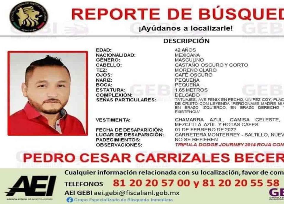 Lo último que se supo fue que Pedro Carrizales estuvo en Saltillo y partió rumbo a Monterrey, Nuevo León.
