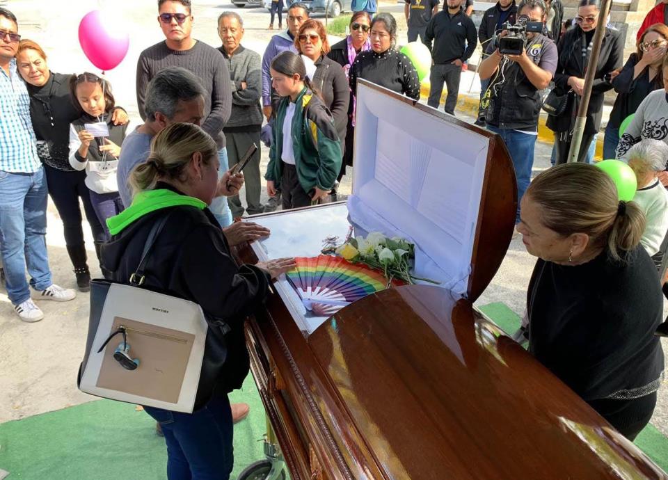 SALTILLO, Coah., noviembre 16 (EL UNIVERSAL).- Rojo, naranja, amarillo, azul, rosa, verde, morado… la gama del arcoíris, tonos que representan a la comunidad LGBTTTIQ+, fueron los colores de los globos que llevaron amigos y familia al panteón Santo Cristo de Saltillo para dar el último adiós a Jesús Ociel Baena Saucedo, le magistrade
