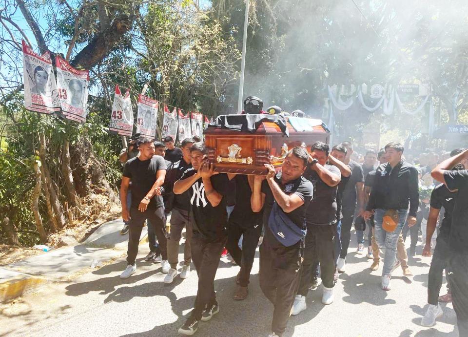 El homenaje a Yanqui Khotan fue íntimo, celebrado en la cancha principal de la Normal, donde también se rindió homenaje a los 43 compañeros desaparecidos desde hace casi una década. Mientras tanto, afuera de la institución, el sacerdote Filiberto Velázquez Florencio, acompañante legal del caso, detallaba los hallazgos sobre el crimen.
