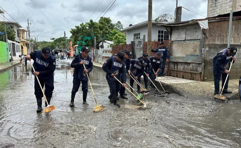 Al menos 400 elementos de la Secretaría de Marina (Semar) brindan apoyo a la población afectada por el paso de la tormenta tropical "Barry"