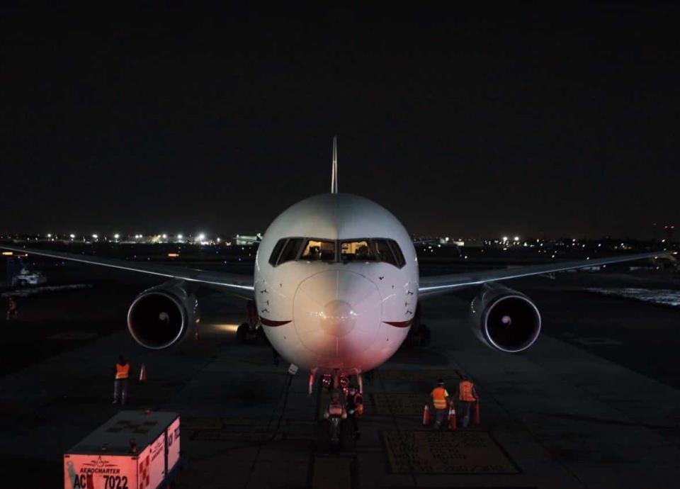 El vuelo llegó la noche del sábado procedente de Shanghái, China.