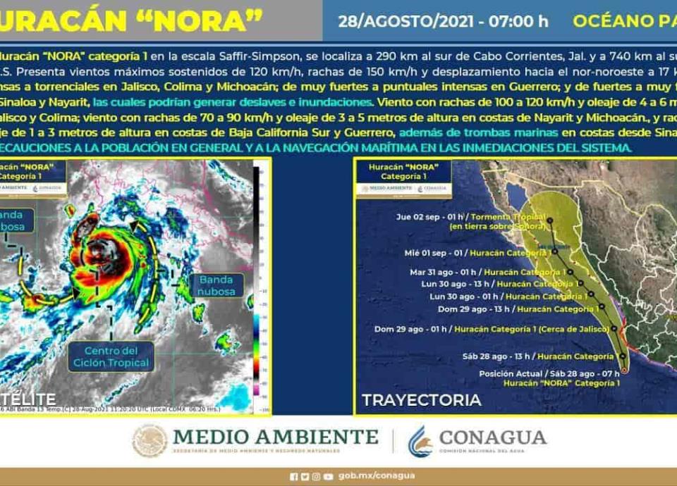 , ante los posibles efectos del huracán "Nora", cuya trayectoria puede generar lluvias intensas, con fuertes vientos a partir de la noche de este sábado y la mañana del domingo.
