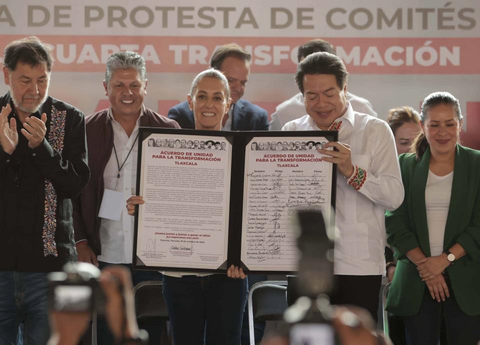 En la firma del acuerdo "Unidad por la Transformación" en Tlaxcala, Tlaxcala, el dirigente morenista destacó la visión de la Coordinadora de Defensa de la Transformación, Claudia Sheinbaum, para convocar a la unidad del movimiento.
