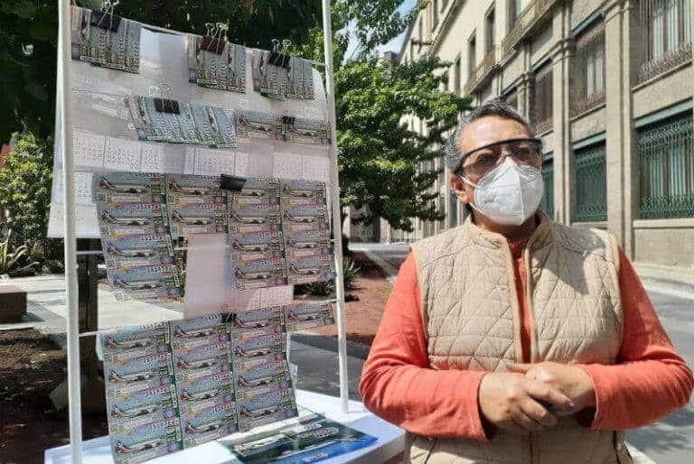 entregará 100 premios de 20 millones de pesos cada uno, este lunes se instaló un puesto para la venta de "cachitos" de este sorteo en Palacio Nacional.