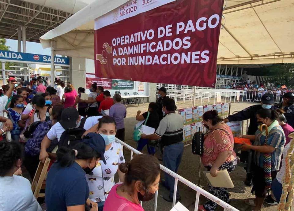 VILLAHERMOSA, Tab./EL UNI.- El pago que realiza la Secretaría de Bienestar a más de 200 mil tabasqueños afectados por las recientes inundaciones se ha convertido en un alto riesgo de contagio de Covid-19