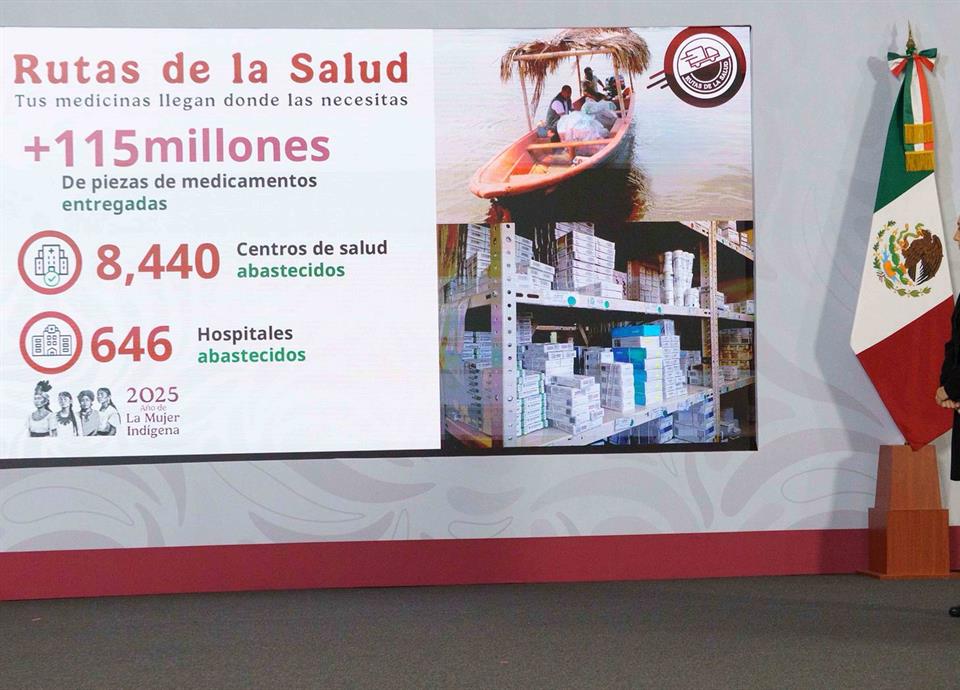 Comentó que la cuarta entrega permitió distribuir más de 14 millones de piezas de medicamentos a 640 hospitales y unidades especializadas a través de 325 rutas activas. También reconoció el trabajo de quienes hacen posible las Rutas de la Salud, desde quienes integran el equipo logístico, choferes e incluso operadores de lanchas.