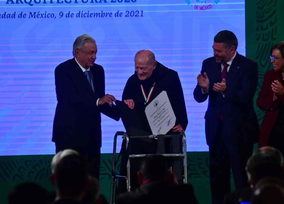 CIUDAD DE MÉXICO.- En una ceremonia en Palacio Nacional, el titular del Ejecutivo destacó que este es un reconocimiento muy merecidos al arquitecto fray Gabriel Chávez de la Mora y al ingeniero José Garaicochea