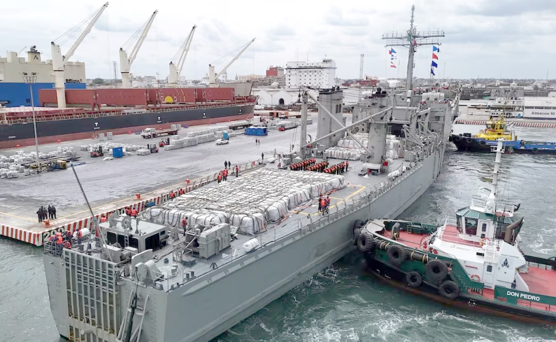 Por lo que zarparon del puerto de Veracruz los Buques de Apoyo Logístico Papaloapan y Huasteco con un total de mil 193 toneladas de víveres con alimentos de primera necesidad como frijol y leche en polvo.