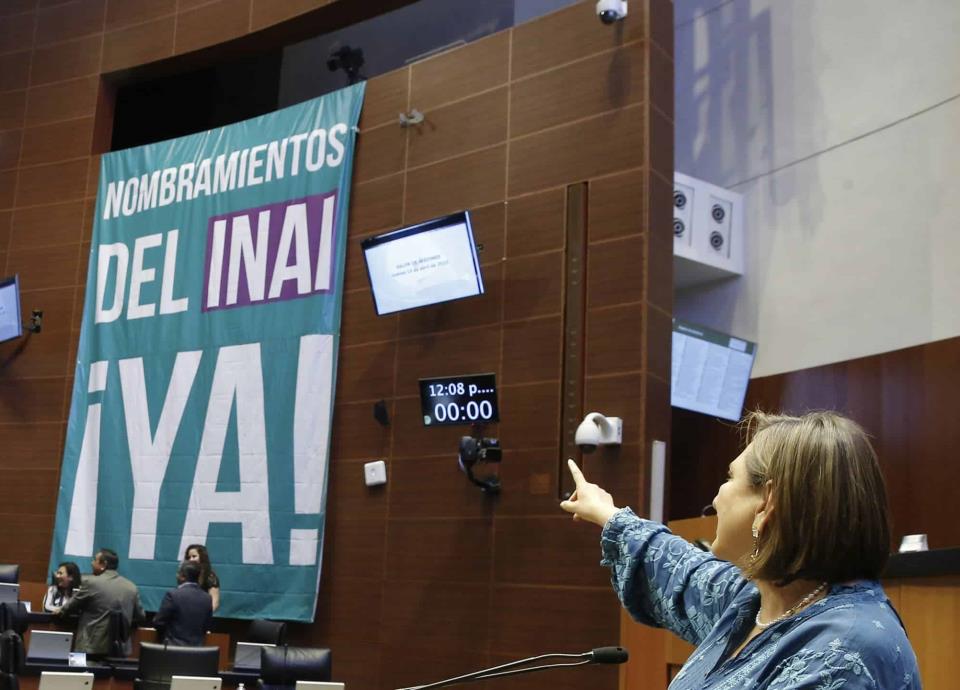Senadoras del PAN colocaron en el Patio del Federalismo y en el Salón de Plenos del Senado, sendas mantas para exigir a la mayoría de Morena y sus aliados, se nombren ya a dos comisionados del Instituto Nacional de Transparencia, Acceso a la Información y Protección de Datos Personales (INAI).