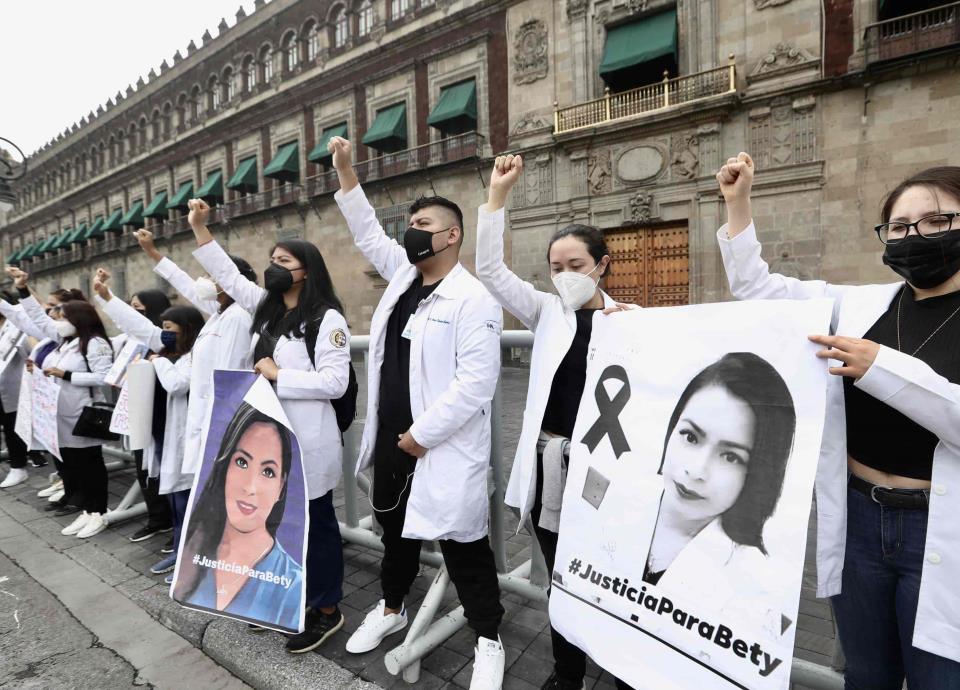 Los médicos salieron de la explanada del Hospital General, tras hacer una convocatoria pública para que acudieran compañeros de todas las instituciones de salud. Dos médicos que portaban una lona con la fotografía de la doctora Beatriz, en la que exigían justicia encabezaron la protesta que se realizó en silencio.