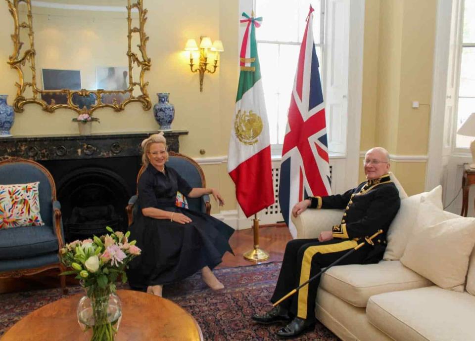 González-Blanco exhibió imágenes del protocolo para presentar las cartas credenciales que la acreditan como embajadora, ante su majestad, la Reina Isabel II.