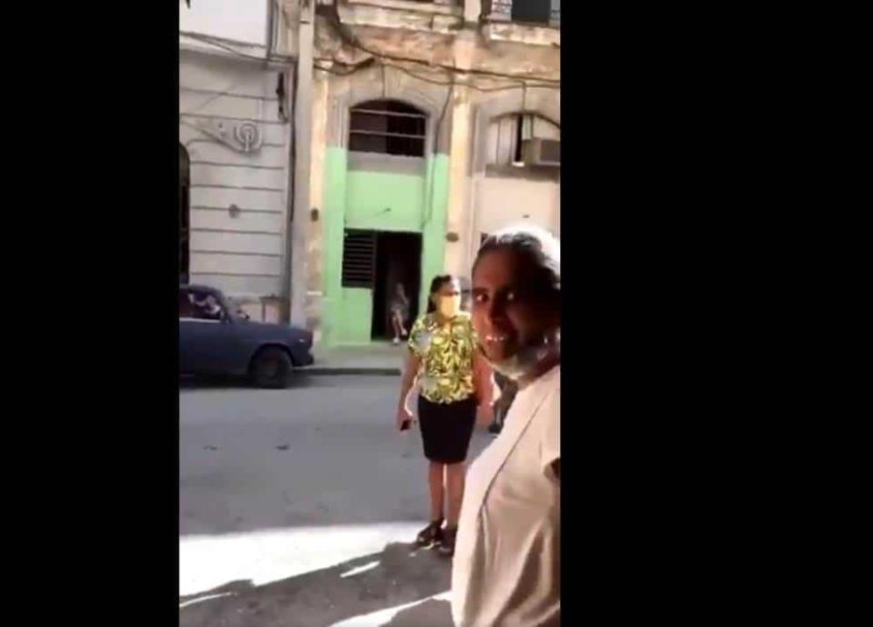 "Esto no tiene que ser así, nosotros todos somos cubanos. No dejen que nos hagan esto, que nos llevan haciendo años, echándonos a pelear unos con otros", dice Ramos antes de intentar caminar sobre la calle.