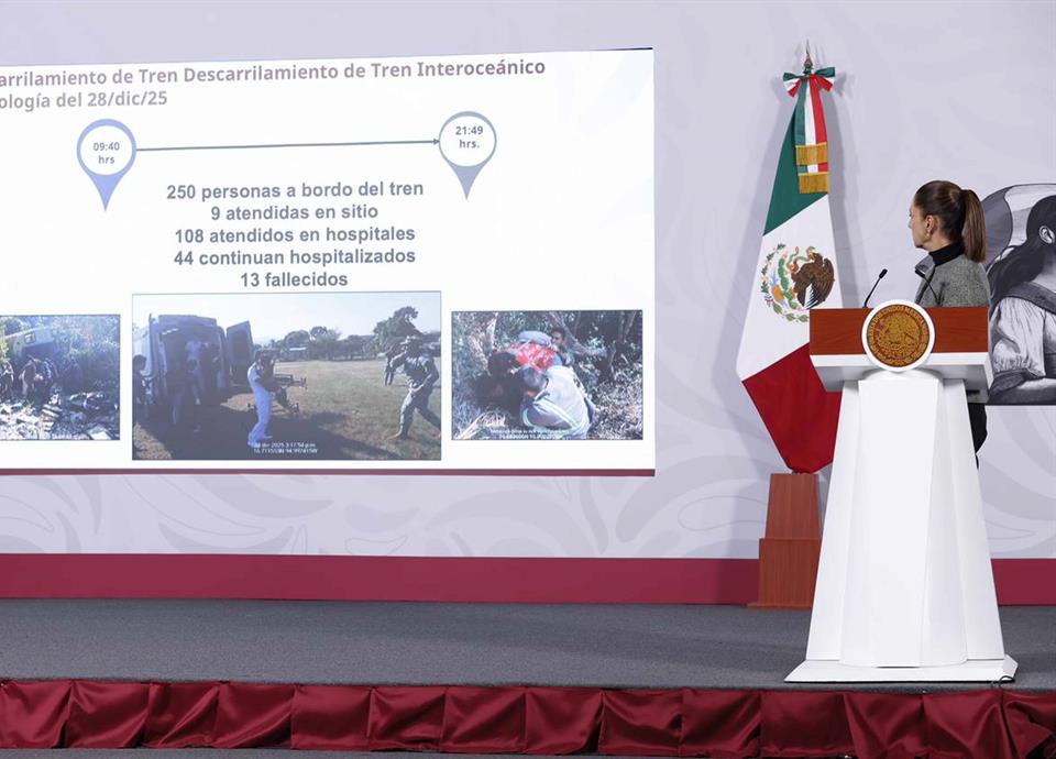 La Mandataria federal señaló que en el orden de prioridad está en primer lugar la atención a las víctimas y a sus familiares; segundo, el análisis con rigor de qué fue lo que pasó, y el tercero, garantizar la infraestructura del Tren Interoceánico.