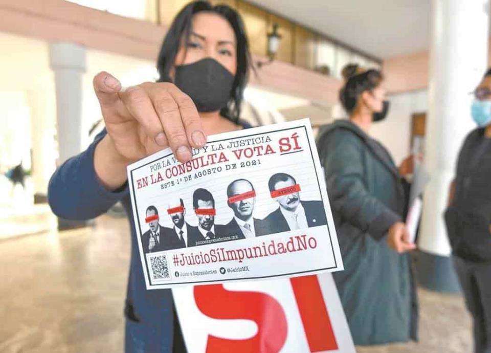 a utilizarse en la consulta popular del 1 de agosto próximo concluyó. El material que será utilizado, añadió, está impreso en tamaño media carta, en papel bond. En su parte frontal se lee la pregunta, la cual fue avalada por la Suprema Corte de Justicia de la Nación (SCJN), así como las dos opciones de respuesta disponibles: sí o no. La pregunta es: "¿Estás de acuerdo o no en que se lleven a cabo las acciones pertinentes con apego al marco constitucional y legal, para emprender un proceso de esclarecimiento de las decisiones políticas, tomadas en los años pasados por los actores políticos, encaminado a garantizar la justicia y los derechos de las posibles víctimas?". El INE detalló que de conformidad con lo dispuesto en la ley correspondiente se incorporaron elementos de identificación, como son la entidad federativa y el distrito —de manera similar a las boletas electorales utilizadas en una elección federal ordinaria—, así como un lomo foliado que permitirá desprender la papeleta para ser entregada a cada ciudadano, conforme se vayan presentando. La autoridad administrativa electoral subrayó que a pesar de las limitaciones presupuestales el INE estableció cuatro medidas de seguridad en la impresión de las papeletas que se utilizarán para el ejercicio democrático. "Se disminuirá el riesgo de reproducción indebida de las mismas. Con ello, el Instituto Nacional Electoral contribuye a la certeza en la realización de esta consulta", indicó. Las medidas de seguridad incluidas en la papeleta son microimpresión, impresión invertida, imagen latente (únicamente visible a través de una mica decodificadora) y tinta invisible.