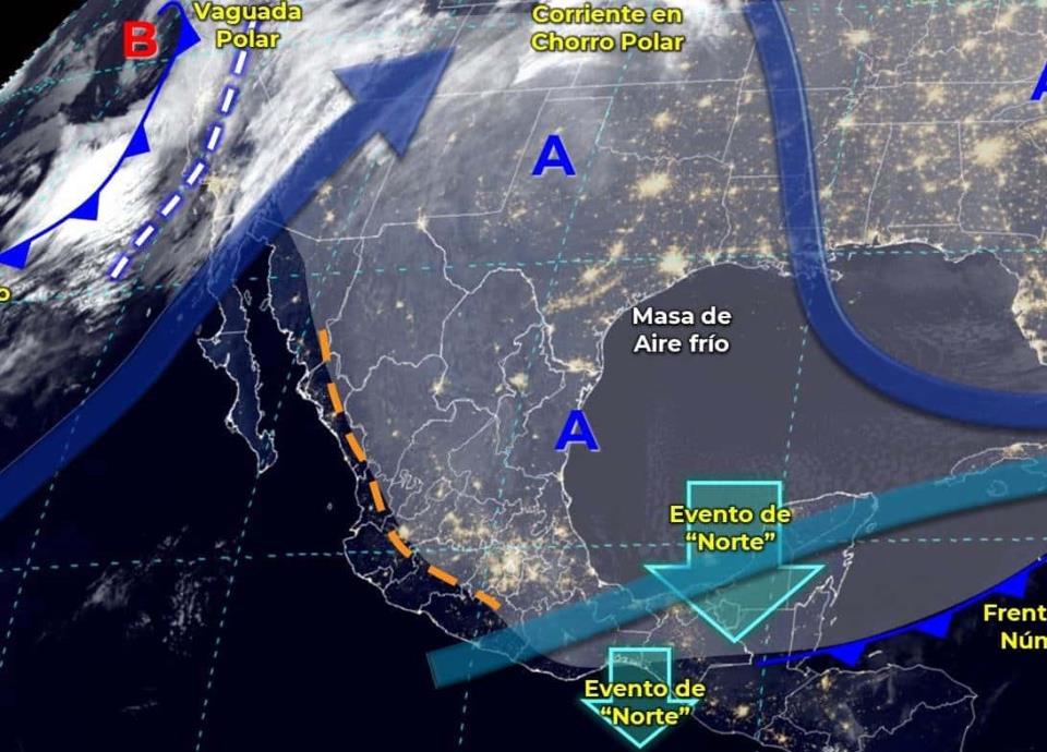 Mientras que el evento de "Norte" provocará rachas de viento de 70 a 90 km/h en el Istmo y Golfo de Tehuantepec, haciendo olas de 2 a 3 metros de altura.