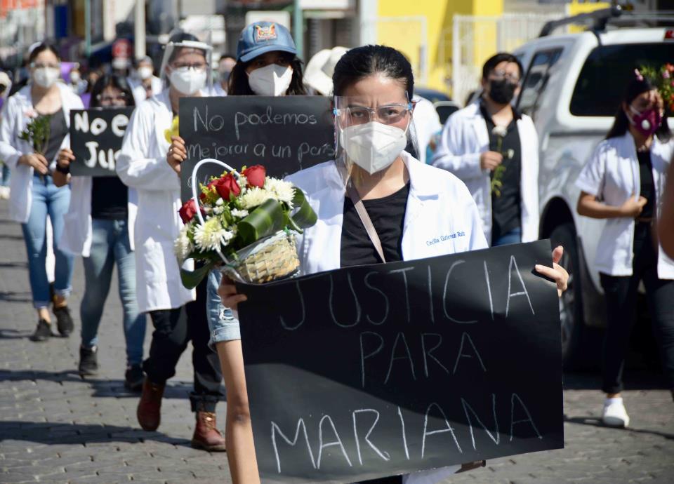(Unach), ocurrida en la colonia Nueva Palestina, de Ocosingo. La Fiscalía General del Estado (FGE) indicó que abrió una carpeta de investigación, y la necropsia legal determinó que la causa del deceso de Mariana de Lourdes "N" fue por "asfixia mecánica secundaria por ahorcamiento", sin que el cuerpo presentara huellas de violencia ni de agresión sexual. Diferentes colectivos identificaron a la víctima como Mariana Sánchez Dávalos, recién egresada, quien realizaba su servicio social en Nueva Palestina. Hace más de un mes, la doctora habría sido víctima de ataque sexual presuntamente por integrantes de la localidad y, tras presentar su denuncia ante la FGE, acudió a la Secretaría de Salud en busca de apoyo, pero le dijeron que "se tomara un mes de vacaciones para recuperarse". Mariana de Lourdes esperaba que fuera transferida a otra comunidad, ya que no quería regresar al sitio donde sufrió la agresión, pero su petición no recibió respuesta y el apoyo económico que recibía quedó suspendido. La joven llevaba 10 días sin dinero, angustiada, deprimida, sin apoyo emocional ni económico, de acuerdo con fuentes cercanas a la víctima. La activista Selene Domínguez aseguró que corresponde a la fiscalía determinar quién o quiénes la agredieron hace casi dos meses, y aclaró que no necesariamente fueron habitantes de la comunidad Nueva Palestina, pues hay señalamientos hacia compañeros de trabajo. EXIGEN JUSTICIA Médicos y alumnos de la facultad de Medicina de la Universidad Autónoma de Chiapas marcharon este viernes en demanda de justicia por el deceso de su compañera Mariana Sánchez Dávalos. A la protesta se sumaron activistas y colectivos feministas que demandaron a las autoridades que se realicen las investigaciones y se castigue a los responsables de la agresión a la joven, así como que se investiguen las omisiones cometidas en su caso. La marcha salió del Parque Bicentenario a la Escuela de Medicina, donde los asistentes acudieron vestidos con batas blancas y negras, en señal de luto y con pancartas de: "Justicia para Mariana" y "Chiapas feminicida".