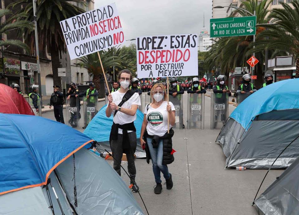 Con gritos como "¡Fuera López! ¡Fuera López!", los manifestantes exigían al Presidente su dimisión, al mismo tiempo que invitaban a la población a unirse al plantón. Aunque este sábado los detractores del Ejecutivo solo ocuparon un tramo de Juárez, también hablaron de su intención de extenderse en los próximos días hasta Paseo de la Reforma, una de las vialidades más importantes de la capital de la República.