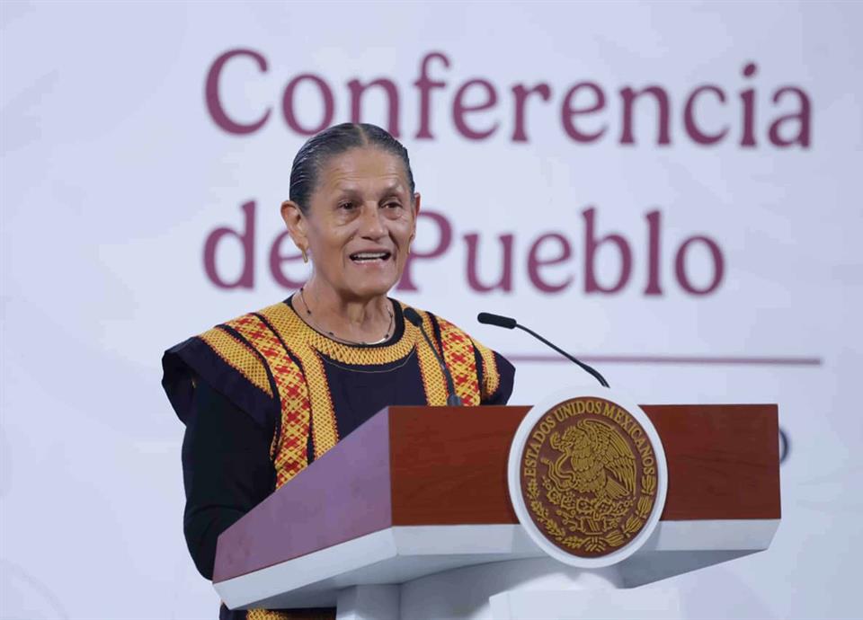 Durante la conferencia matutina, la promotora y artista otomí Marisela González González ofreció un mensaje emotivo en su lengua originaria antes de señalar que este proyecto representa un acto de orgullo y reivindicación: