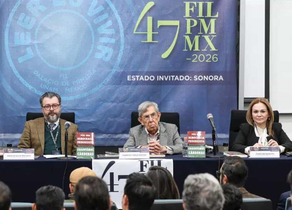Cuauhtémoc Cárdenas Solórzano, ingeniero civil, exsenador de la República y presidente de la Fundación para la Democracia, durante la presentación de su libro "Por una democracia progresista" en la FIL Minería, 24 de febrero de 2026.