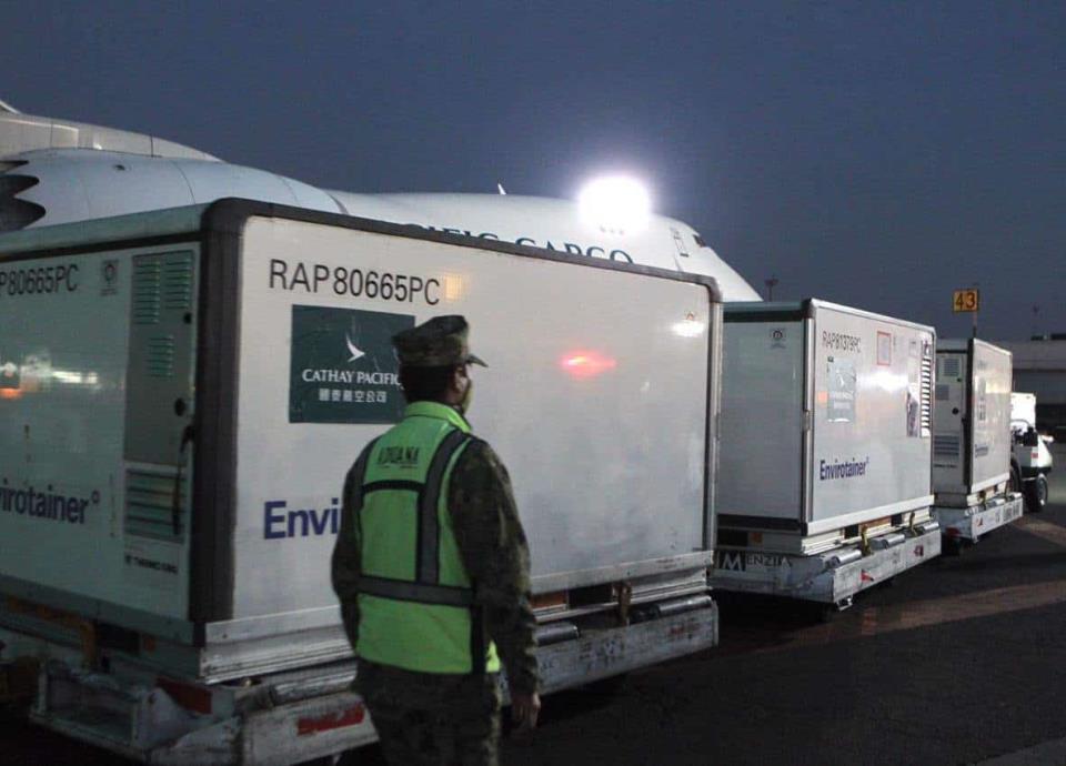 A las 06:19 horas aterrizó en la capital un avión procedente de Hong Kong que trasladó los biológicos, los cuales serán utilizados para seguir vacunando a los sectores prioritarios de la población.