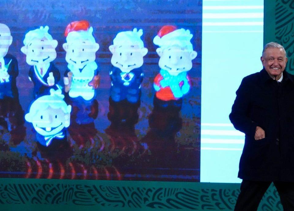 En el Salón Tesorería, el presidente López Obrador exhibió que las personas le hacen llegar figuras como "AMLO Beisbolista", "Santa AMLO", así como carritos inspirados en Gas Bienestar y personalizados.