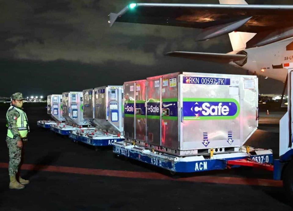 CIUDAD DE MÉXICO.- La noche de este domingo arribaron al Aeropuerto Internacional de la Ciudad de México (AICM) un millón 221 mil 300 dosis de la vacuna contra Covid-19 de la farmaceútica AstraZeneca