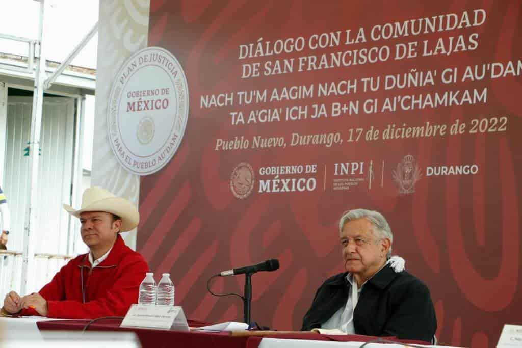 Acompañado por el gobernador de Durango, Esteban Alejandro Villegas, e integrantes de su Gabinete, el presidente López Obrador expresó que es tanto el abandono a los pueblos indígenas que hacen falta muchas cosas todavía.