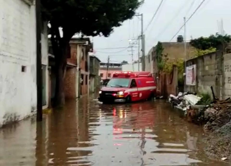 En las calles Girasol, Gardenia y Olmos de la colonia El Potrero, brindaron apoyo por inundación, donde el tiro de agua alcanzó el metro de altura.
