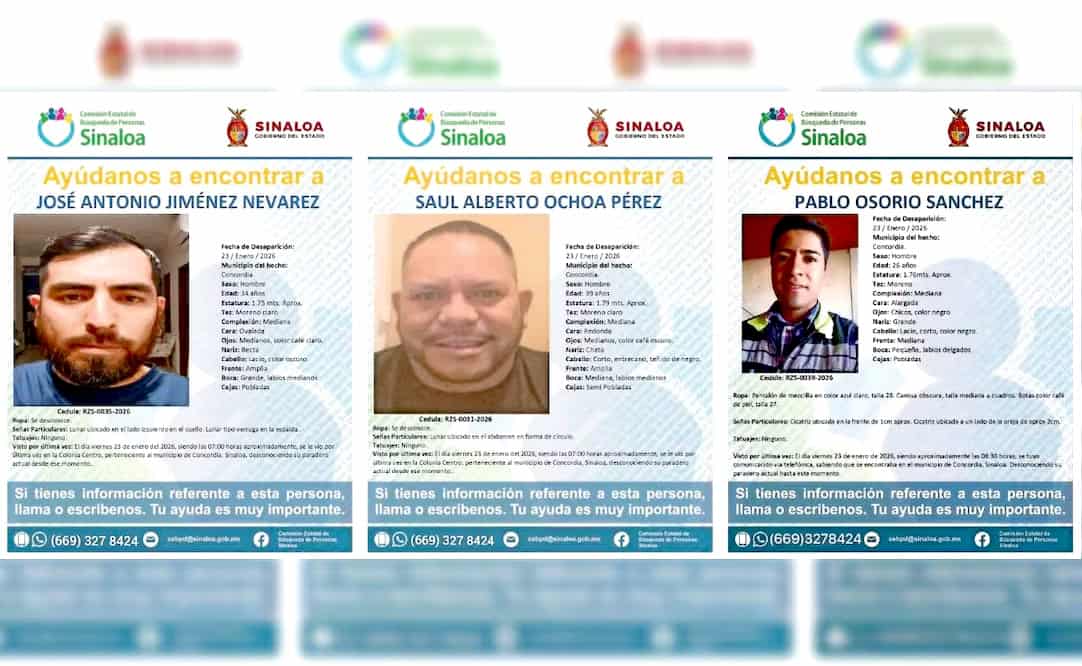 "Todo lo anterior, después de la realización de cateos, así como labores de campo, efectuadas en el municipio de Concordia, Sinaloa, donde continúa el procesamiento del lugar y la búsqueda de indicios, así como de cualquier elemento que lleve al esclarecimiento de los hechos.".