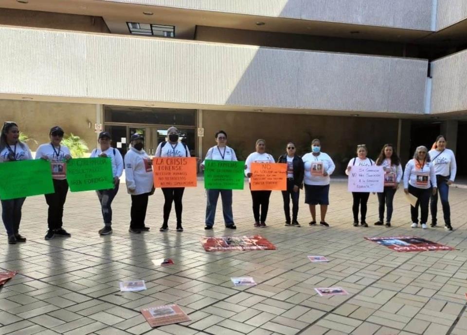 Las rastreadoras que se colocaron en la explanada de Palacio de Gobierno, con pancartas con textos de "Sr gobernador no más simulación a la dirección forense"; "Sr gobernador queremos expertos forenses no diseñadores de imagen", demandaron que el nuevo funcionario sea removido.