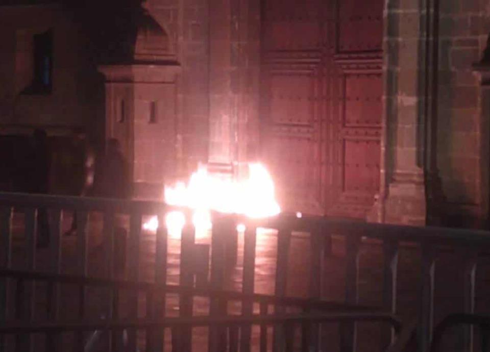 Los manifestantes prendieron un par de llantas cerca de la puerta de acceso del recinto histórico en Atención Ciudadana, localizada en Correo Mayor.