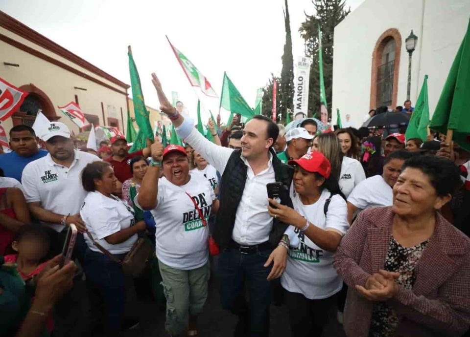 Ante miles de parrenses, en medio de la lluvia y con un gran ánimo, el candidato de la Alianza Ciudadana por la Seguridad, Manolo Jiménez, se comprometió este lunes a potencializar Parras con más infraestructura social, turismo, seguridad y embellecimiento urbano.