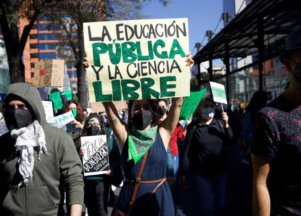 A la manifestación que partió del Parque Hundido hacia las instalaciones del Consejo Nacional de Ciencia y Tecnología (Conacyt) se sumaron maestros y alumnos de instituciones educativas como la UNAM, UAM, IPN, Ibero, ITAM, ENAH, UDG, Instituto Mora, la Universidad de Guanajuato y la Red Pro Ciencia.