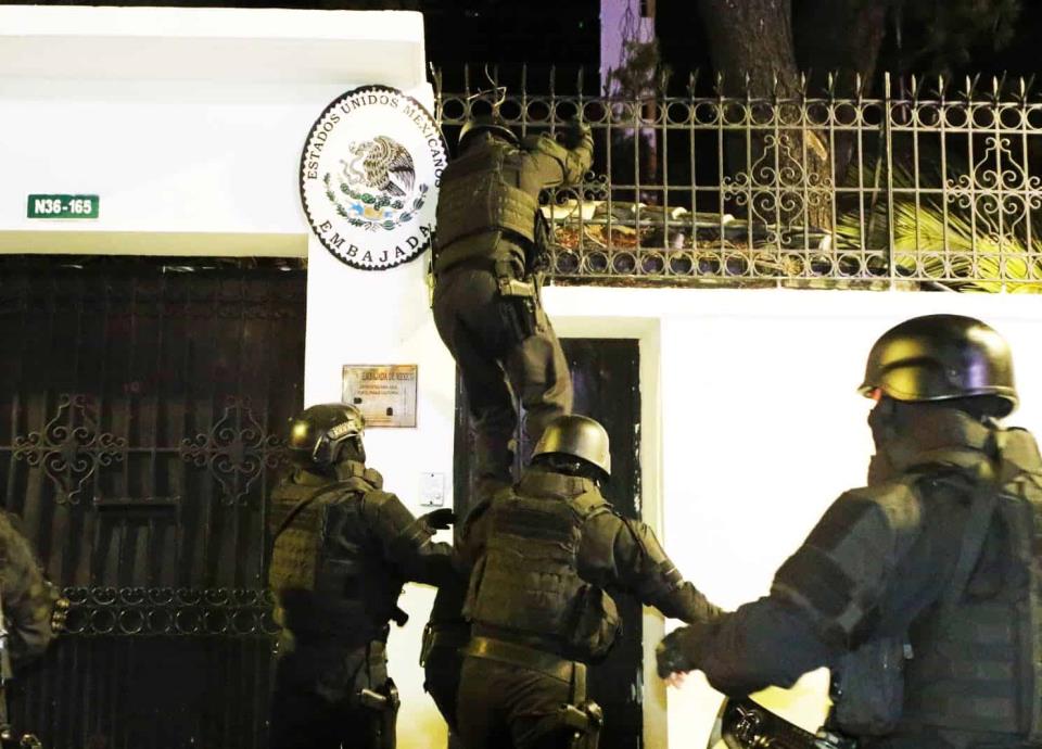 Un grupo de policías de Ecuador irrumpió a la fuerza en la embajada de México en Quito.