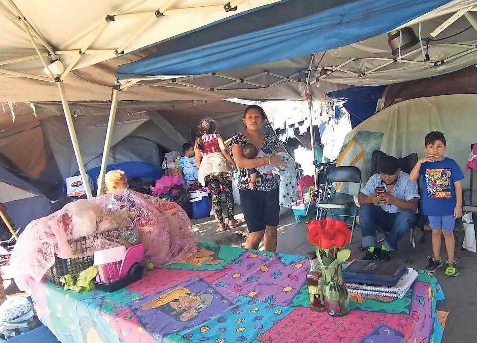 Liam es el migrante más pequeño en el campamento instalado en la Plaza de la República en la zona centro de Reynosa. A pesar de que él y su familia se encuentran a escasos cinco metros del Puente Internacional que separa a este municipio de Hidalgo, Texas, están lejos de alcanzar el sueño americano. Sin embargo, la estancia en este campamento se está convirtiendo en un calvario, pues ni siquiera pueden comprar pañales para Liam, quien pasa los días en brazos de su madre para darle calor o en la vieja colchoneta que les sirve de cama y que deben cubrir con muchas cobijas. El clima les juega malas pasadas, pues mientras las mañanas y noches son frías, las tardes son sumamente calientes. La lluvia, asegura Ingrid, entra de pronto por algunos hoyos que se encuentran en los techos de las casas de campaña. "Cuando llegamos nos dieron una casa de campaña porque traemos al bebé. Aquí tenemos que dormir siete personas y los días que hace mucho frío, pues nos juntamos más. Tenemos tres colchones y muchas cobijas que nos han regalado y así la estamos pasando", describe.