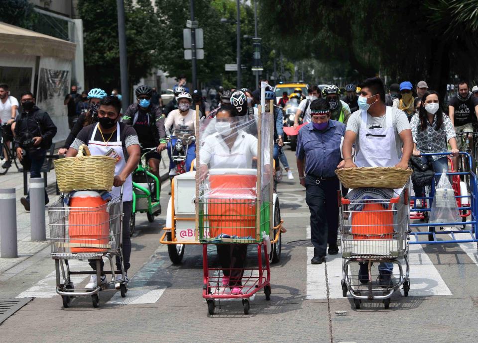 A las 12 horas, los trabajadores tomaron sus carritos de supermercado, con sus canastas de pan y termos para el café que venden todas las mañanas en Polanco y salieron a la vanguardia, resguardados por agentes de tránsito.