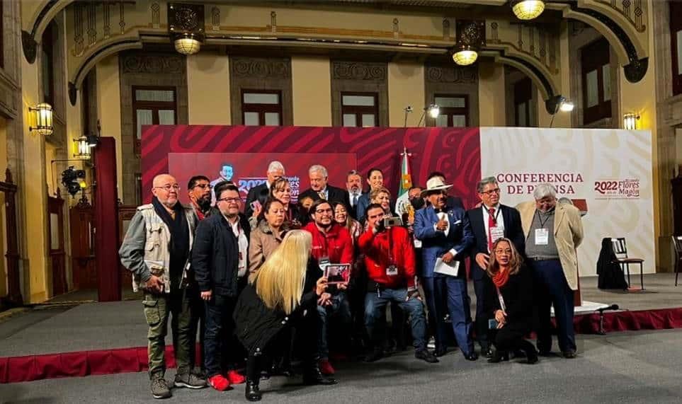 Al final de su última mañanera del año, López Obrador convocó a los asistentes a la mañanera a tomarse una foto con él en el Salón Tesorería, con motivo de fin de año.
