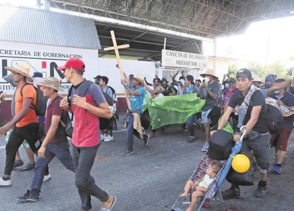 Huehuetán, CHIS / El Universal Alrededor de 3 mil migrantes procedentes de Centroamérica, Cuba, Venezuela, Colombia y Haití tomaron este domingo un en el parque de Huehuetán, en su segundo día de caminata hacia la Ciudad de México, sin que agentes de la Guardia Nacional (GN) y del Instituto Nacional de Migración (INM) intentaran detenerlos. Cerca de las 8:00 horas, el contingente, integrado por hombres, mujeres embarazadas y niños, así como personas con discapacidad, salió del ejido Álvaro Obregón, ubicado a unos 14 kilómetros de Tapachula. A unos 300 metros del lugar, tres combis del Instituto Nacional de Migración y dos unidades de la Guardia Nacional observaban el avance de la caravana, que partió de Tapachula el pasado sábado, donde permanecieron por varios meses en espera del resultado del trámite migratorio y la cita para la solicitud de asilo ante la Comisión Mexicana de Ayuda a Refugiados (Comar). “No caminen rápido para que las mujeres y niños no se queden atrás, ahí viene Migración y la Guardia Nacional deteniendo a los que se adelantan o se quedan al último, vamos despacio, por favor”, alertaba a través de un megáfono el activista Luis Rey Villagrán, que acompaña a la caravana junto con Irineo Mújica, de Pueblos Unidos Migrantes. El objetivo de este grupo es llegar a la Ciudad de México y acudir a la Cámara de Diputados y la de Senadores para exigir una solución a la crisis migratoria que se registra en la frontera sur, y que se brinde certeza a los extranjeros que huyen de la violencia, pobreza, desastres naturales y abusos de derechos humanos. Bajo los fuertes rayos del sol y temperaturas de 38 grados, caminaron hombres y mujeres cargando a sus hijos en brazos y espalda; otros se prepararon con carriolas, en las cuales transportaban hasta tres menores. Otros niños lloraban porque se negaban a seguir caminando, mientras sus rostros estaban mojados por el sudor. Los migrantes se quejan que el INM no les permite salir de la ciudad de Tapachula, a pesar de que muchos de ellos cuentan con documentos migratorios, como la tarjeta permanente y la resolución positiva por parte de la Comisión Mexicana de Ayuda a Refugiados (Comar) . Al medio día, en medio de gritos de júbilo, el contingente cruzó el segundo retén del Instituto Nacional de Migración, que se ubica en la entrada del poblado, mientras los agentes migratorios y de la Guardia Nacional se encerraban en la caseta de revisión. Este domingo, el contingente caminó 14 kilómetros para llegar a este poblado, ubicado a 30 kilómetros de Tapachula, donde dormirán para continuar su viaje la mañana de este lunes.