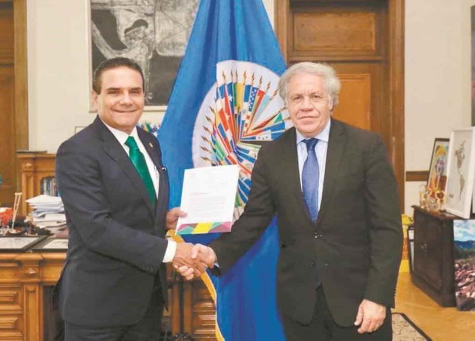 En la Unión Americana se reunió con Luis Almagro Lemes, secretario general de la OEA, y le entregó un documento sobre lo que consideró, "la estrategia fallida del gobierno federal".