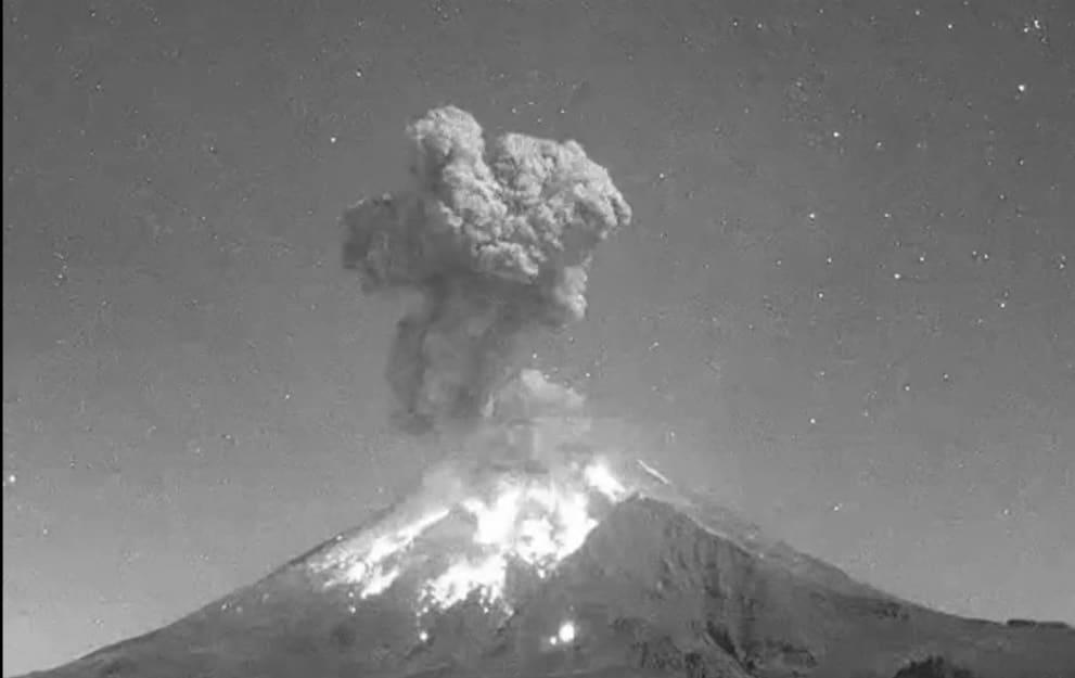 La primera ocurrió a las 00:29 horas de este martes y en el video captado por WebCams México, se observa el momento de la explosión de material volcánico. De acuerdo con la cuenta SkyAlert, el estallido se escuchó en localidades cercanas al volcán.