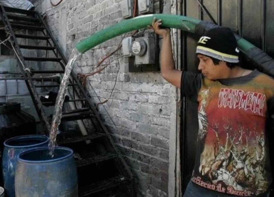 Los habitantes de 189 populares del sur de la capital del estado, en cubetas, recipientes de plástico y tambos almacenan agua que se distribuye en pipas, ya que desde hace cuatro días se quedaron sin el abasto de agua a causa de una ruptura de una línea de conducción de 36 pulgadas.