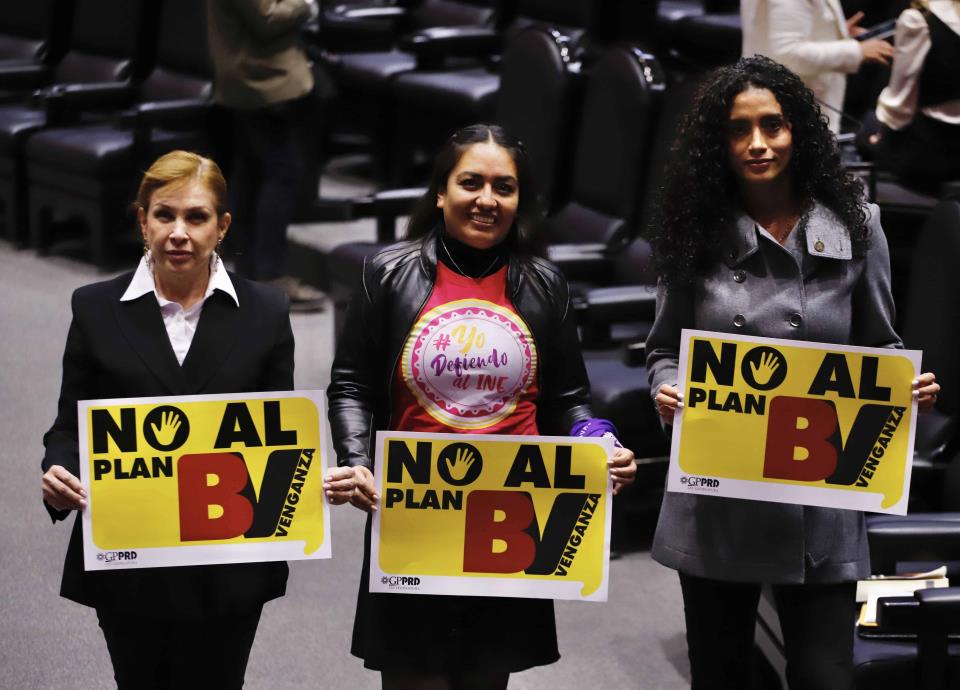 Previamente el pleno del Senado de la República, con el voto a favor de Morena y sus aliados, aprobó el llamado Plan B de la Reforma Electoral del presidente López Obrador, donde se revivió y avaló la llamada cláusula de vida eterna para los llamados partidos satélites del gobierno, es decir el PT, PVEM y PES, se disminuyeron las candidaturas a migrantes, indígenas y afrodescendientes, así como se compactó la estructura del INE lo que derivará en despidos masivos.