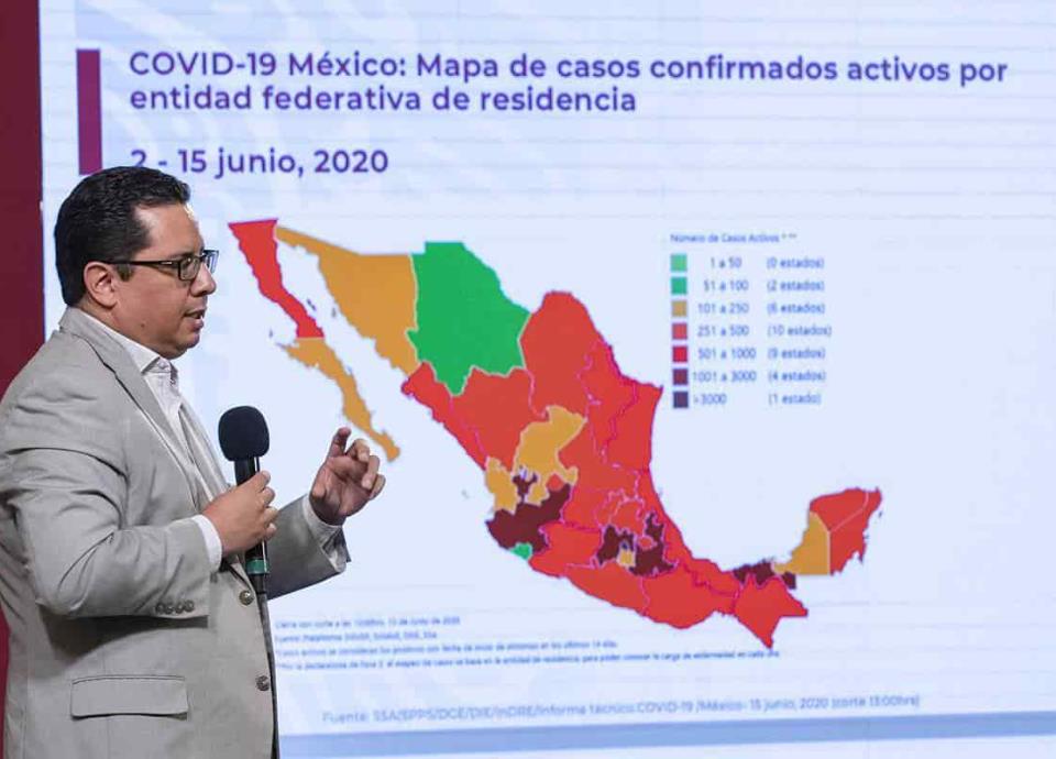 CIUDAD DE MÉXICO.- La Secretaría de Salud (Ssa) presentó este lunes los detalles del esquema de reapertura para algunos negocios durante la nueva normalidad, en lo que corresponde a los semáforos rojo y anaranjado. José Luis Alomía, director General de Epidemiología, detalló que los gimnasios, cines, centros comerciales, iglesias y restaurantes deben seguir cerrados o abrir con reservas. Para el semáforo rojo, que está en 16 estados, los hoteles permanecerán con una ocupación de 25% y las áreas comunes cerradas. Los restaurantes deben mantenerse con servicio para llevar o a la habitación, en caso de estar en un hotel. Las estéticas, sólo con servicio a domicilio y deben contar con un protocolo de desinfección. Para el semáforo anaranjado, presente en 16 entidades, se permite a los hoteles tener 50% de apertura en áreas comunes y la mitad de su aforo, lo mismo a los restaurantes y las estéticas que, además, deberán manejar sus servicios sólo con citas. Para ambos colores, es decir, para todo el país, permanecen suspendidas las actividades como conciertos y convenciones, servicio en bares, centros nocturnos. A los gimnasios sólo se les permitirá abrir con la mitad de su capacidad en el semáforo anaranjado. En el caso de los supermercados, en el semáforo rojo deberán permanecer abiertos a sólo 50%, y en el anaranjado se incrementa a 75%. En ambos casos se mantiene la disposición de sólo acudir una persona por familia. Ayer lunes, México sumó 150 mil 264 contagios de Covid-19 (3 mil 427 más que el domingo) y registró 17 mil 580 muertes a causa del virus. Mantiene 53 mil 217 casos sospechosos de coronavirus y mil 615 decesos sospechosos, así como 20 mil 392 casos activos. De las camas para atender Infecciones Respiratorias Agudas Graves se mantienen ocupadas 10 mil 679, 45% del total. Las que tienen ventilador sólo hay 3 mil 223 ocupadas, 39% de las 8 mil 263 totales. Hasta la noche del lunes, había 4 mil 555 personas intubadas, 28 mil 404 hospitalizadas graves, 15 mil 662 estables y 101 mil 643 casos positivos permanecen en casa. Alomía señaló que en el total mundial de casos de coronavirus en el mundo la región de América disminuyó 1% respecto a la semana pasada. En México, comentó, la mayor tasa de contagio y fallecimientos se mantiene entre los varones. Por su parte, la Secretaría de Relaciones Exteriores (SRE) informó que al menos mil 345 mexicanos han fallecido en Estados Unidos a causa del Covid-19 y detalló que hay 385 casos confirmados de connacionales contagiados en ese país. Según datos de la red consular mexicana en Estados Unidos, el estado con mayor número de muertes de mexicanos es Nueva York, con 719 decesos; seguido de California, con 155, e Illinois, con 140. En el caso de los contagios, Nueva York se mantiene a la cabeza con 101 mexicanos positivos; seguido de Texas, con 86, y California, con 44. En todo el mundo se tiene conocimiento de 339 mexicanos contagiados de Covid-19 y 12 decesos a causa del virus. El país con mayor número de contagios y muertes entre mexicanos, luego de Estados Unidos, es Canadá, con 319 casos y cinco defunciones.